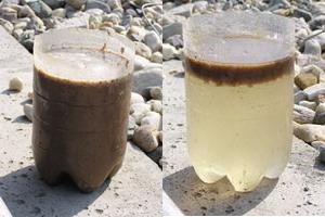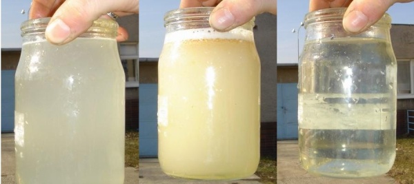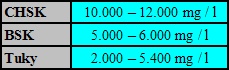 Odpadní mlékárenská voda (1450 BSK5) "nasycená" voda (vzduch + chemikálie) voda po přečištění (170 BSK5)