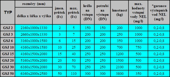 Odlučovač Alfa GSJ je novým vylepšeným typem odlučovače s vyšší účinností. Používá se k čištění vod kontaminovaných ropnými látkami a mechanickými nečistotami např. dešťových vod z parkovišť, odstavných a manipulačních ploch, šrotišť, atd.